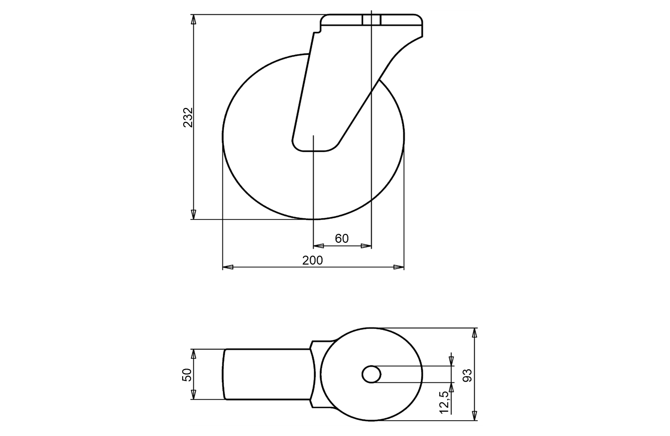Premer koles x širina:200 x 50 mm