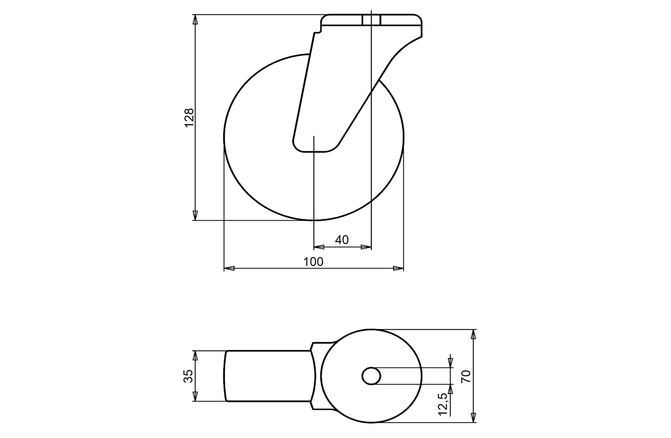 Swivel castor + solid polyamide wheel Ø100 x W35mm for 200kg Prod ID: 34384